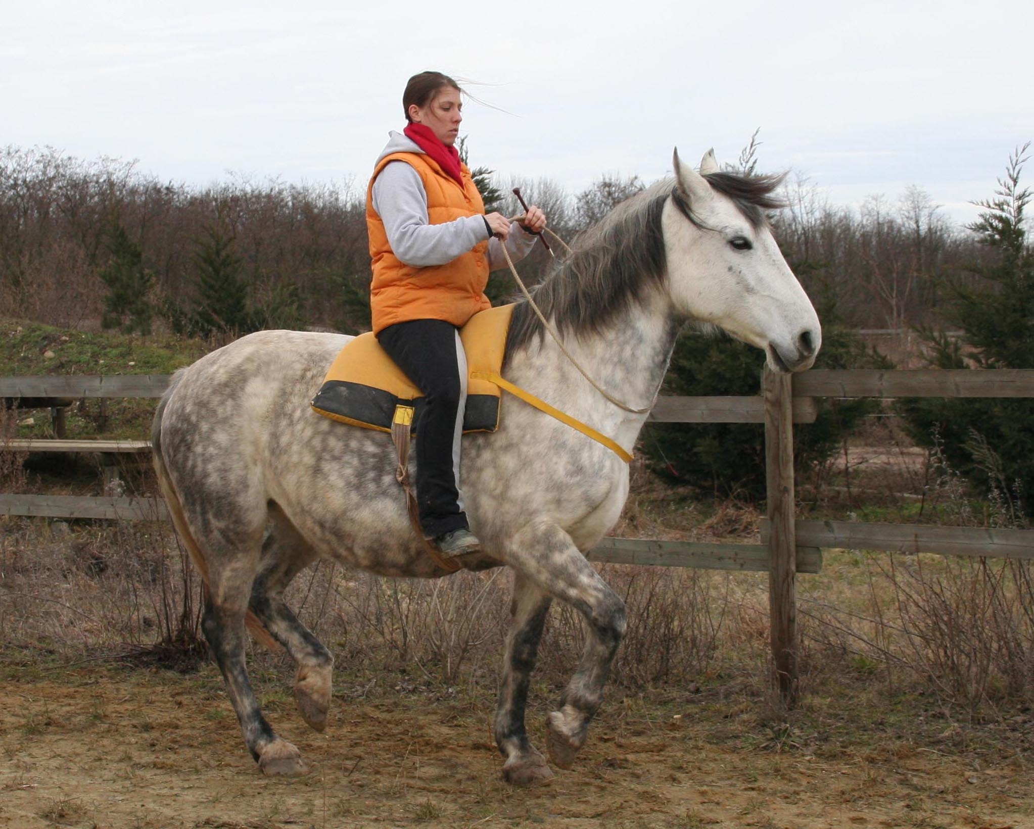Galathee beautifully collected, piaffing on the neck ring in self-carriage