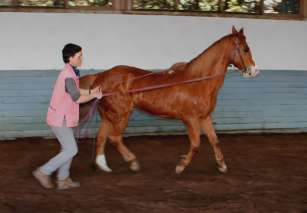Not having my left hand fixed on his croup I find it harder to keep a soft regular contact to his mouth. Mit der linken Hand nicht auf der Kruppe fixiert fällt es mir schwerer den sanften Kontakt am Zügel zu halten.