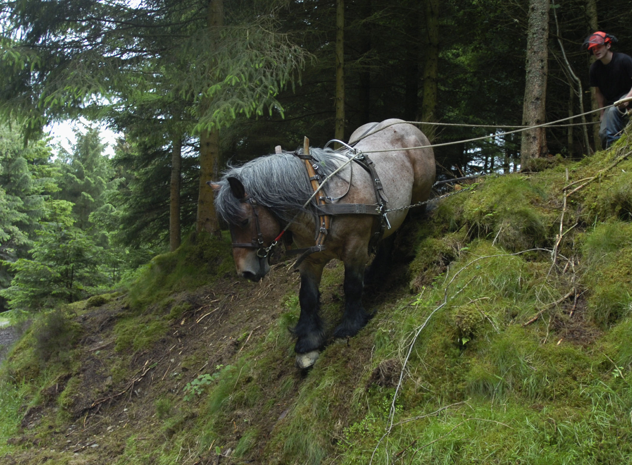 Horse Logging Whinlatter Forest. brewster, 23/06/06..pic kevin murphy Horse logging with Belgium Arden horses Sultan 9 with handler Simon Lenihan